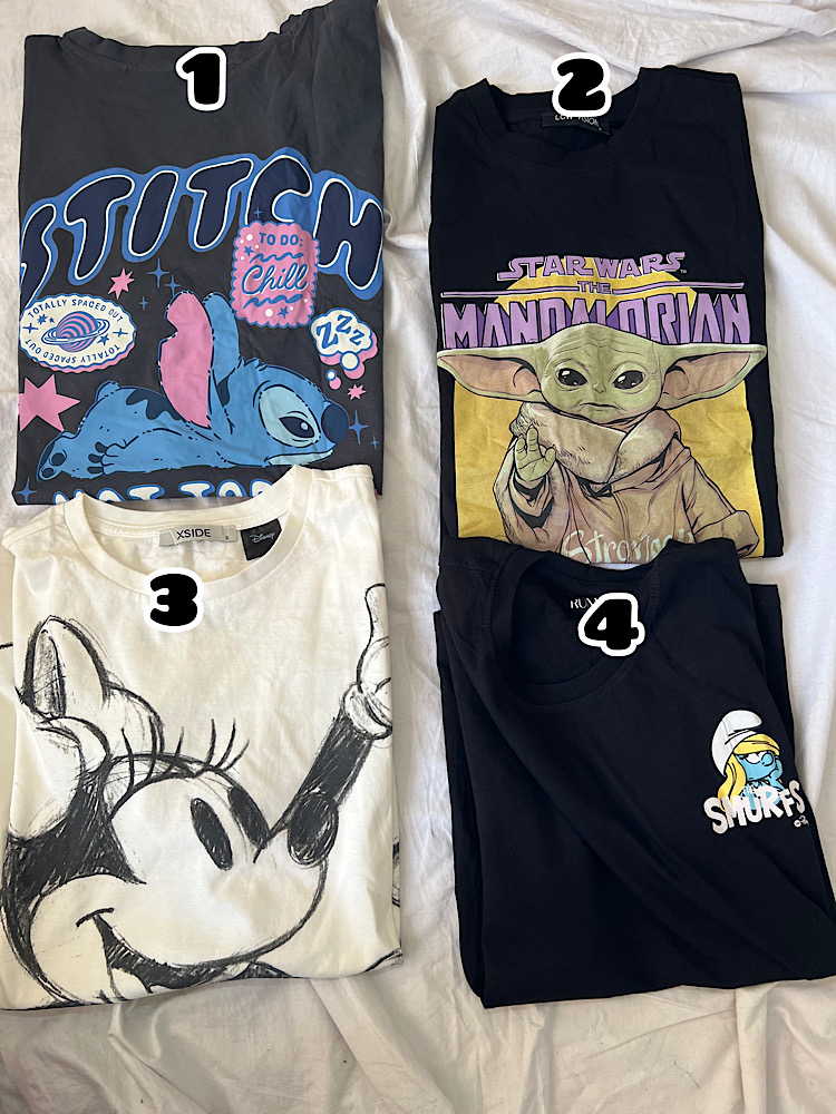 سایزبندی تیشرت میکی/بیبی یودا/اسمورف/استیچ