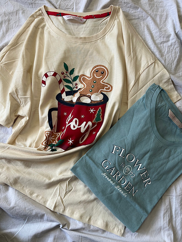 تیشرت باکسی زنانه نخی با طرح های کلاسیک