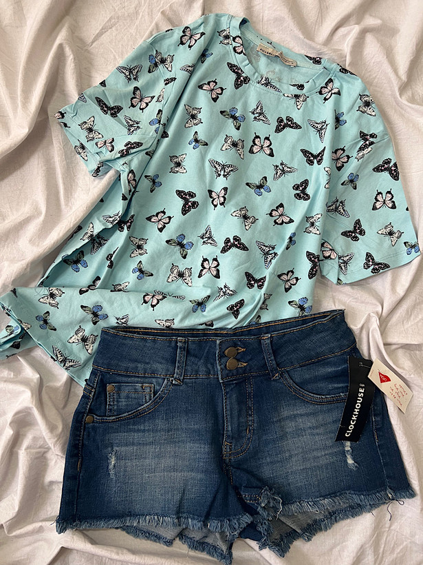 تیشرت باکسی زنانه طرح پروانه 3210
