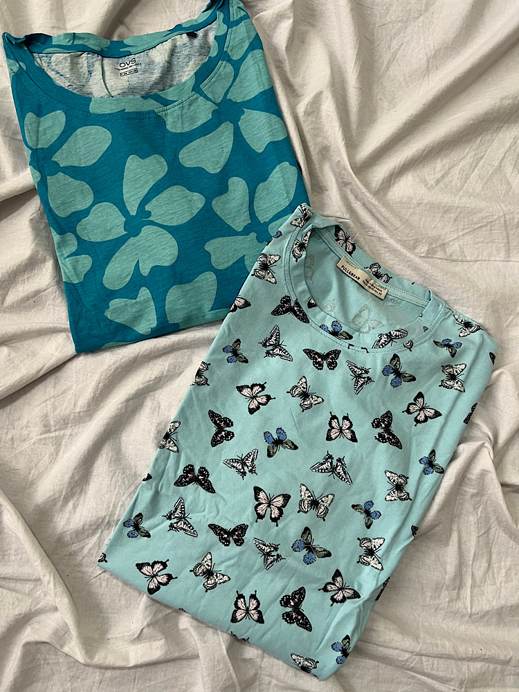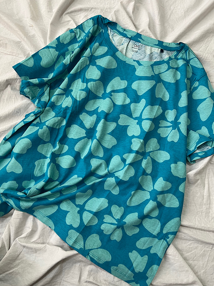 تیشرت زنانه نخی طرح پروانه/گل آبی12990