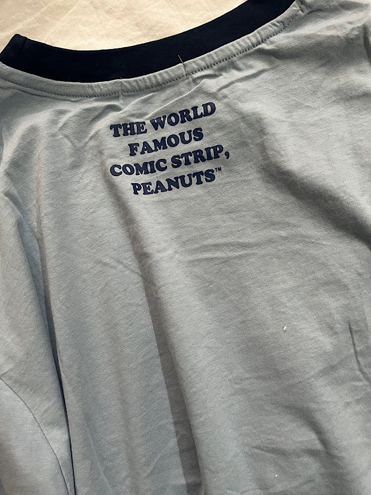 تیشرت زنانه نخ پنبه طرح اسنوپی گرم بالا سایزبندی: اسمال:عرض سینه۴۸/قد۵۷/سایز ۳۶ مدیوم:عرض سینه۵۰/قد۵۸/سایز ۳۶-۳۸ لارج:عرض سینه۵۴/قد۶۰/سایز۴۰-۴۲ اندازه گیری ها با درصدی خطا هستن کشسانی ۳/۴ سانتیمتر